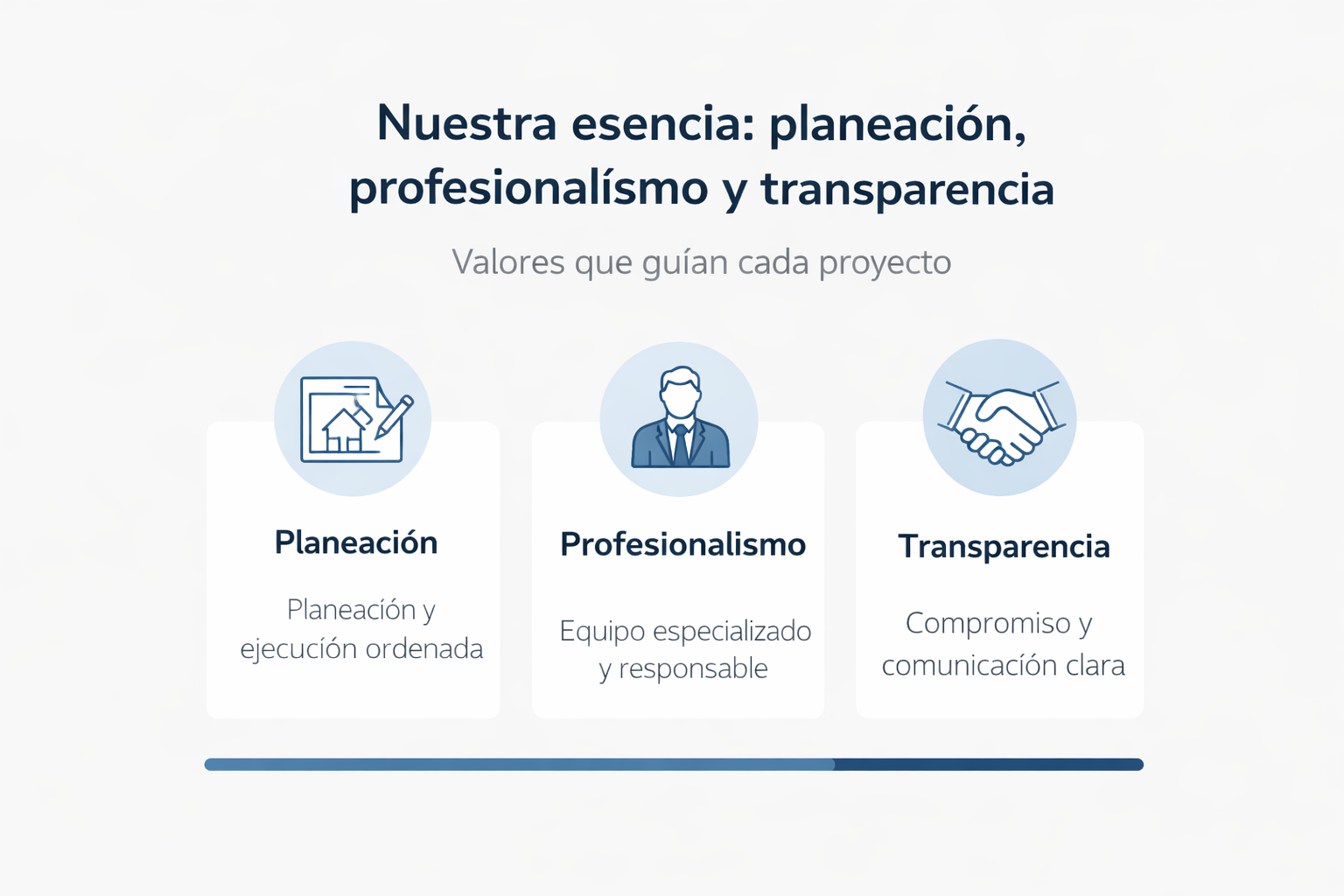 La columna vertebral de nuestro trabajo se cimienta en tres pilares fundamentales: una planeación meticulosa que anticipa cada desafío, un profesionalismo que guía nuestras acciones y decisiones, y una transparencia total en nuestros procesos. Estos valores, distintivos de GRUPO TREVIA, nos permiten construir relaciones de confianza y asegurar la excelencia en cada proyecto que emprendemos.